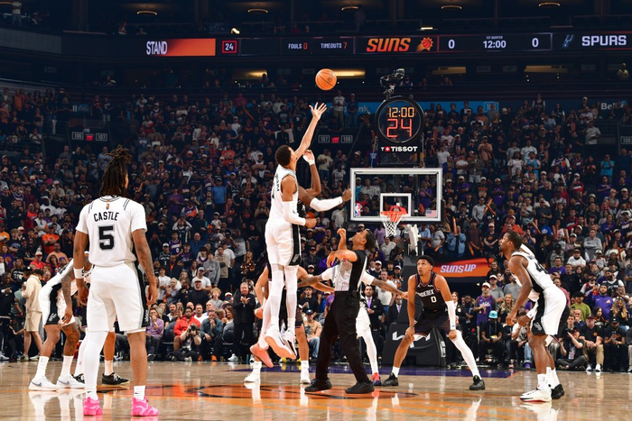除了层层设防,太阳还鼓励文班亚马在低位用背打完成终结。即便文班有身高优势,但因为体重不够,太阳球员一给文班对抗,后者的出手投篮就很容易变形。再加上太阳是用锋线错位防文班,而正印中锋留在油漆区随时准备补防,前顶后盖的防守策略让文班亚马很不适应。