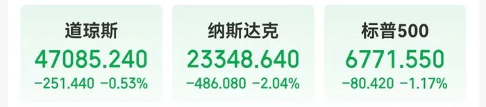 当地时间11月4日,美股三大指数集体收跌,纳指下跌486.08点,跌幅2.04%;标普500指数跌1.17%;道指跌0.53%。