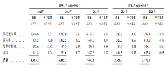 毛利率方面,2022年受疫情导致原材料波动影响低至23.0%,2023-2024年虽回升至34.9%-35.3%的区间,但2025年前四个月再度下滑至33.6%,核心症结在于婴儿相关卫生产品单价的下降:2025年前四个月,婴儿纸尿裤平均售价为8.29美分/片,较2023年高点下滑0.43美分/片;婴儿拉拉裤平均售价为8.60美分/片,较2023年高点下滑0.89美分/片。产品降价不仅直接挤压盈利空间,还可能使公司陷入“以价换量”的恶性循环,若后续销量增长无法覆盖单价下滑幅度,毛利率或将进一步承压。