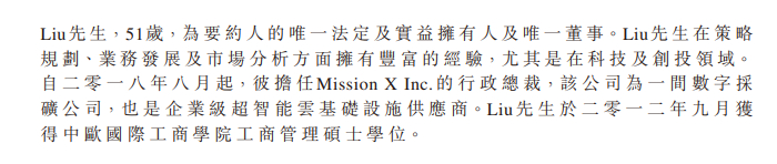 原控股股东卢永锠夫妇以约1.4625亿港元将公司6亿股或75%股权出售予数字采矿公司Mission X Inc.行政总裁Liu Chuang及私人投资者李浩渊,每股作价0.24375港元。按此对价,公司整体价格约1.95亿港元。