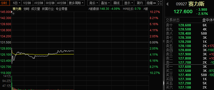 11月5日,赛力斯在香港联交所主板上市,成首家“A+H股”豪华新能源车企。上市首日,赛力斯则出现破发,盘中最低报118港元,较131.5港元的发行价跌近10%,截至午间收盘,跌幅仍近3%。赛力斯A股同样走低,午间收盘跌超4%。