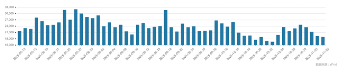 Wind数据显示,11月5日,A股成交额为1.89亿元,连续2个交易日不足2万亿元。同时,10月16日以来的15个交易日内,A股仅有6个交易日的成交额超过了2万亿元。