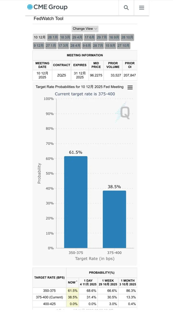 市场对美联储后续降息路径保持关注,据CME“美联储观察”数据,市场对12月降息25个基点的预期仍占据主导。