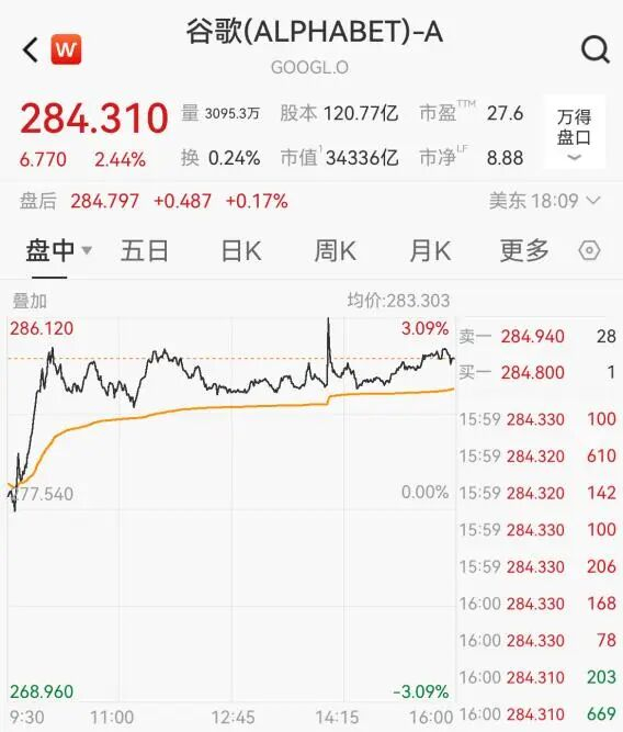大型科技股多数上涨,谷歌涨超2%,创收盘历史新高。