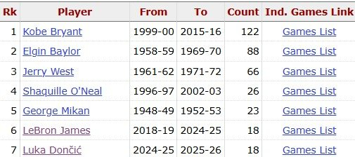 据统计,这是东契奇湖人生涯第18次40+,追平詹姆斯,并列队史第6多。